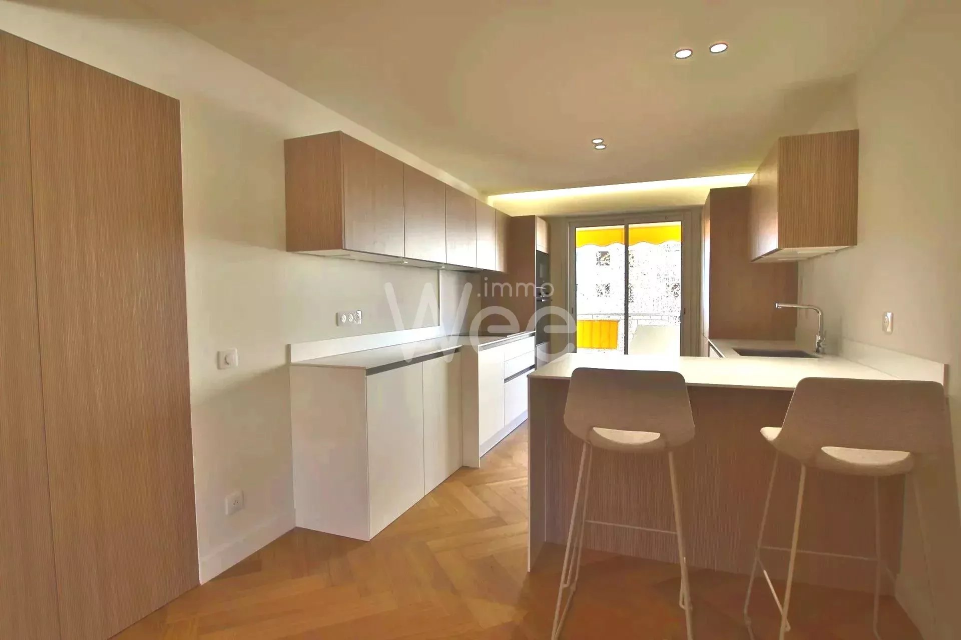Ref. 86417930 - Situé en dernier étage, splendide 4 pièces traversant de 100 m2 entièrement rénové avec goût comprenant grande pièce principale, cuisine équipée, 3 ch, 2 sdb, nombreux rangements le tout donnant sur terrasses 42 m2 vue port et montagnes, cave et garage.